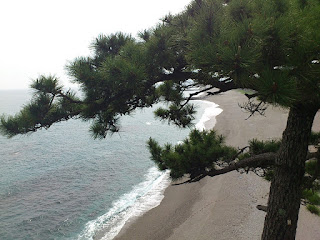ここで、靴を脱いで、海に入りました。